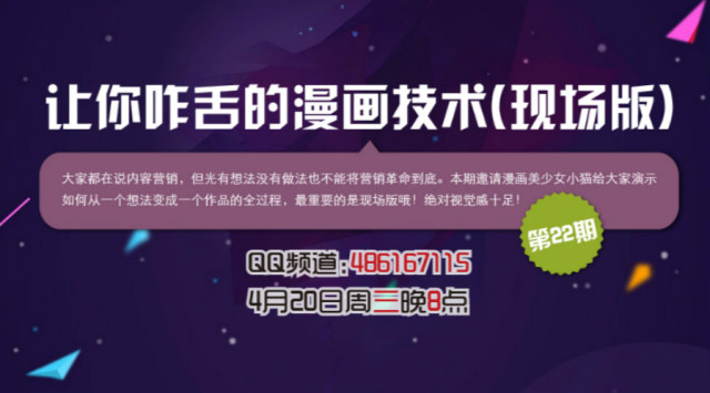 一、讓你咋舌的漫畫技術 大家都在說內容營銷,但光有想法沒有做法也不能將營銷革命到底。本期邀請漫畫美少女小貓給大家演示如何從一個想法變成一個作品的全過程,重要的是... [閱讀全文]